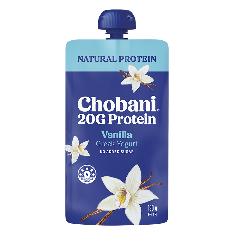 Chobani 20G Protein Pouches are made from 100% fresh milk, strained further so the protein comes naturally – no milk powders added. This convenient 190g size is perfect for on the go or as a snack, helping you reach your protein goals.